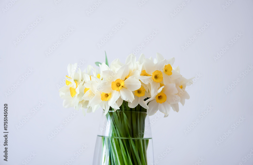 Fresh daffodil bouquet. Minimal home beauty and spring awakening.