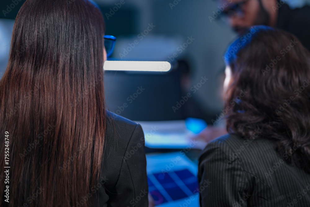 A senior manager provides one-on-one training to a smiling junior female employee in a modern office, fostering a supportive environment for professional growth and skill development.