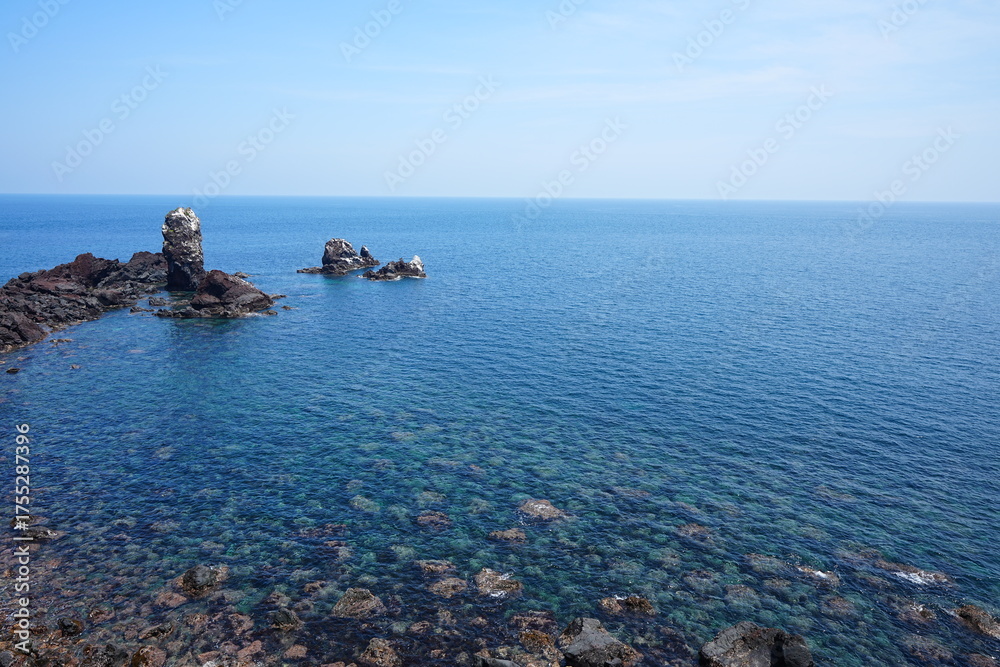 clear blue sea and rock island