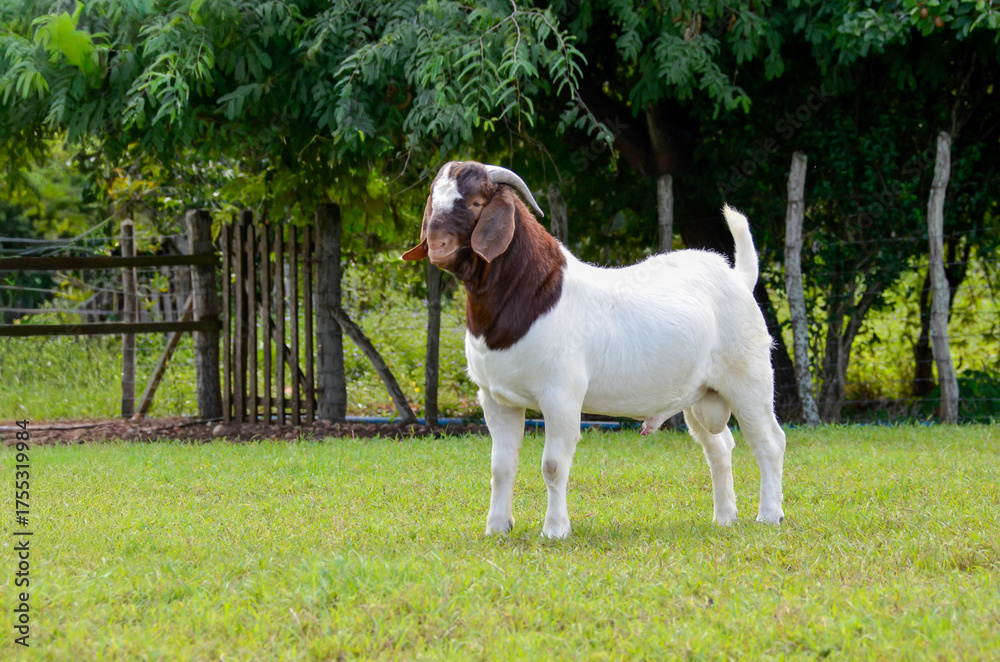 The Boer breed is a goat of South African origin, recognized for its high meat production, precocity, hardiness, prolificacy, and excellent muscular conformation.