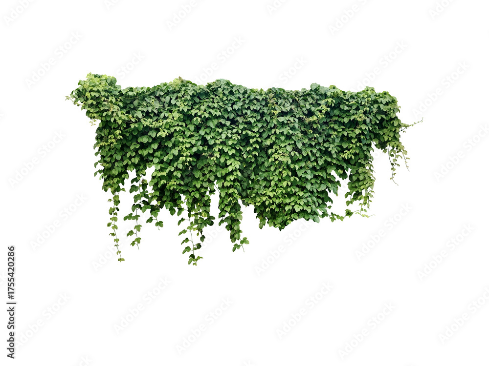 Close-up of a large number of growing green vines isolated on a transparent background png file.
