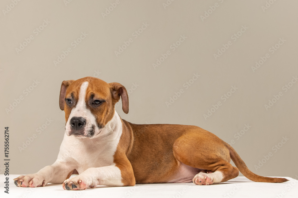 American Staffordshire Terrier puppy on a plain background