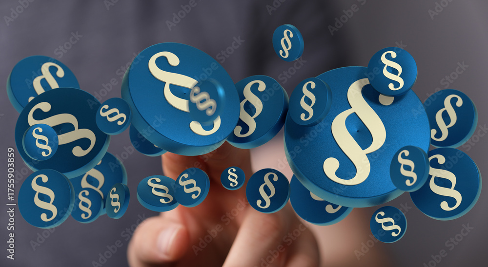 Abstract 3D rendering of paragraph symbols. Ideal for legal, law, justice, and regulation concepts.