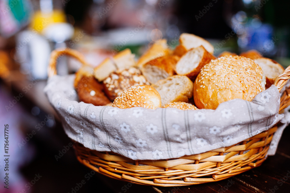 Bread in basket on the banquet table