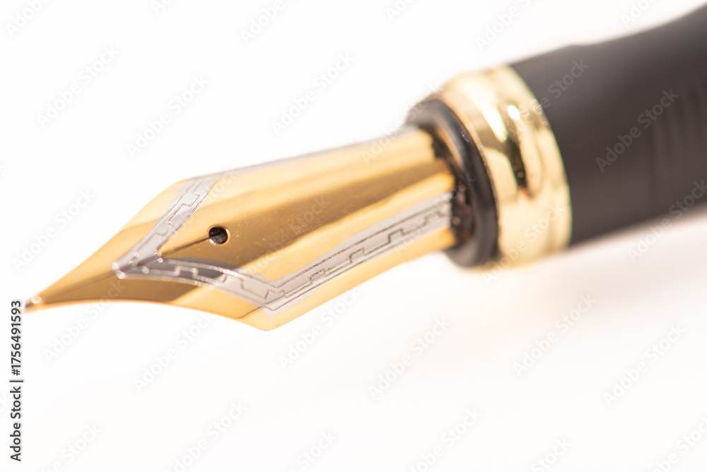 Fountain pen on a white background, a beautiful fountain pen close-up with beautiful details on a white background, selective focus