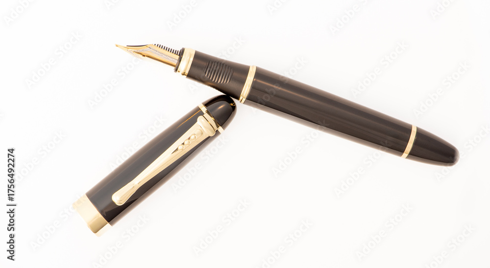 Fountain pen on a white background, a beautiful fountain pen close-up with beautiful details on a white background, selective focus