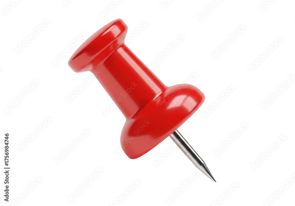Red push pin isolated PNG on transparent background, thumbtack for bulletin board and office supply