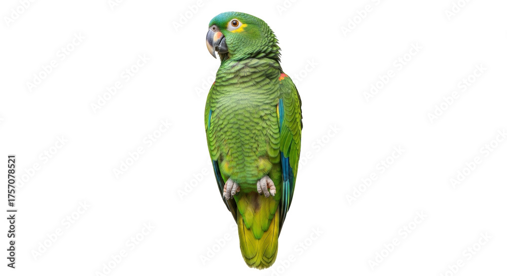 Isolated Parrot, bright green plumage, a beautiful exotic bird from Central and South America