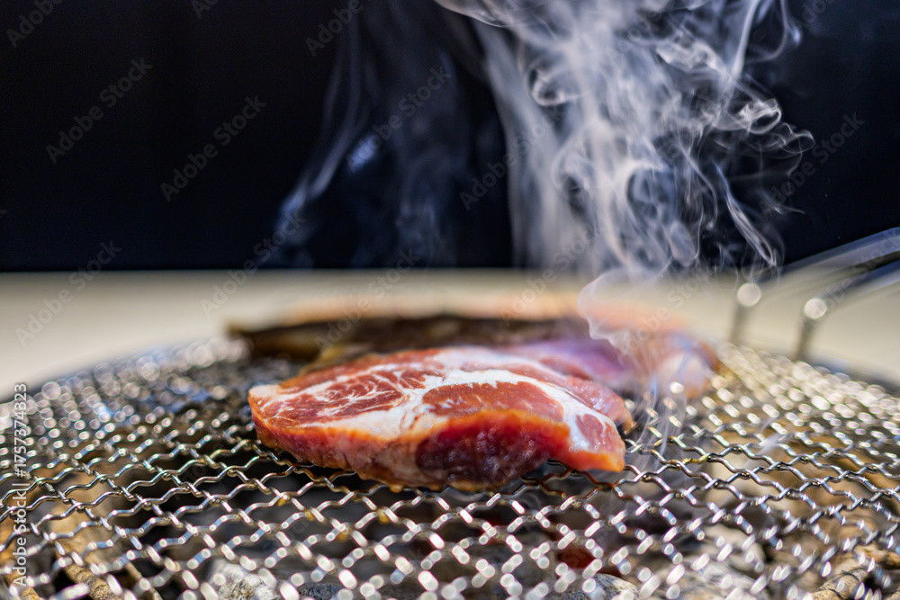 숯불 위 맛있게 구워지고 있는 돼지고기