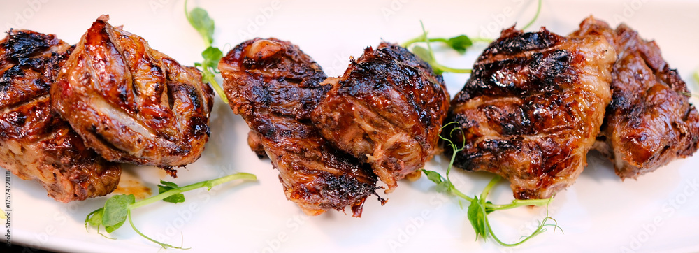 grilled chicken liver skewer yakitori serve in izakaya style - Asian food style. High quality photo