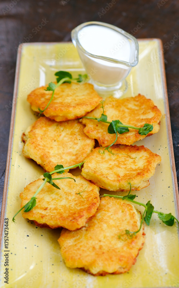 Potato Pancake with Sour Cream on a white background. High quality photo