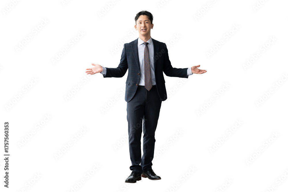スーツ姿の男性ビジネスマン(全身・背景透過PNG)