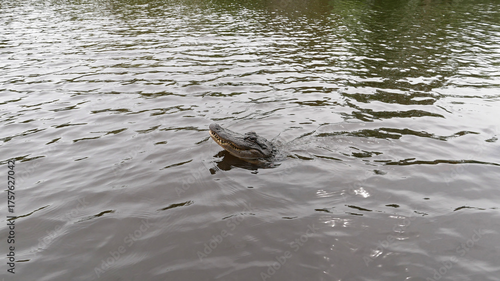 American Alligator swimming in murky Southern Louisiana Wetlands, Louisiana, USA
