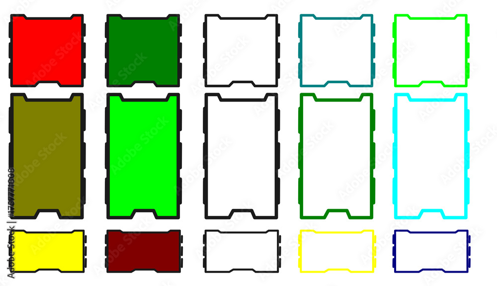 Colorful geometric shapes arranged in a grid pattern on a white background.