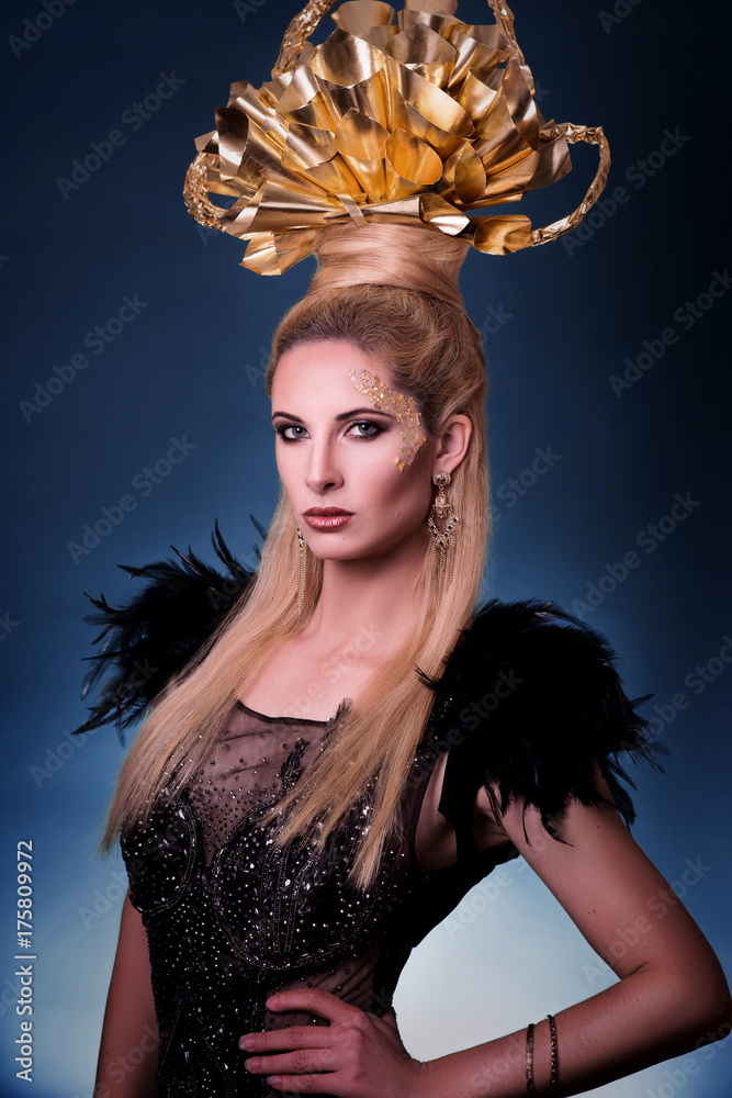 Goldenes Beauty Make-up und Headpiece - Portrait - Frau