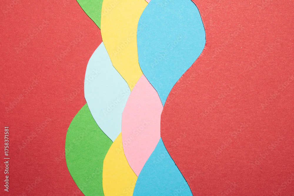 Simple Paper Card Primary Colour Wave Flowing Wavy Geometric Shapes in Multicolour Rainbow Calm Background