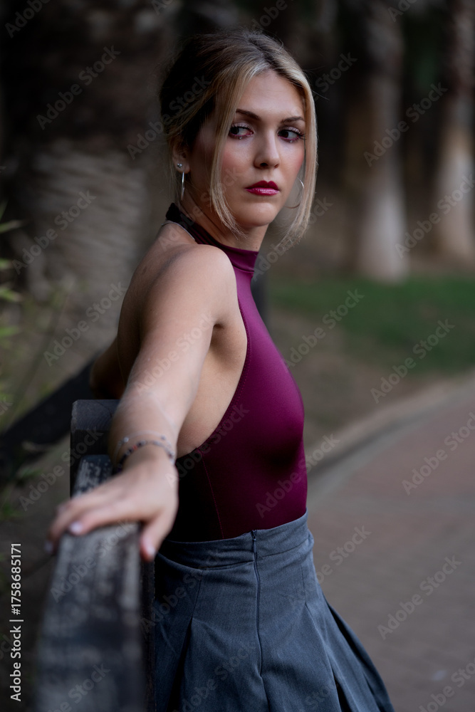 Young woman confidently posing outdoors in park
