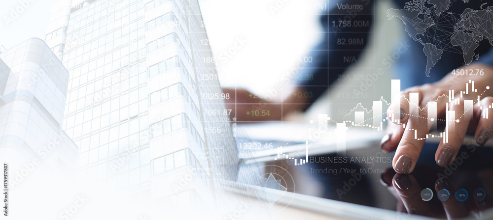 Business analysis, finance analyst analyzing sales data and financial growth graph chart report. Business planning, strategy and development. Financial accounting. market research, data analysis