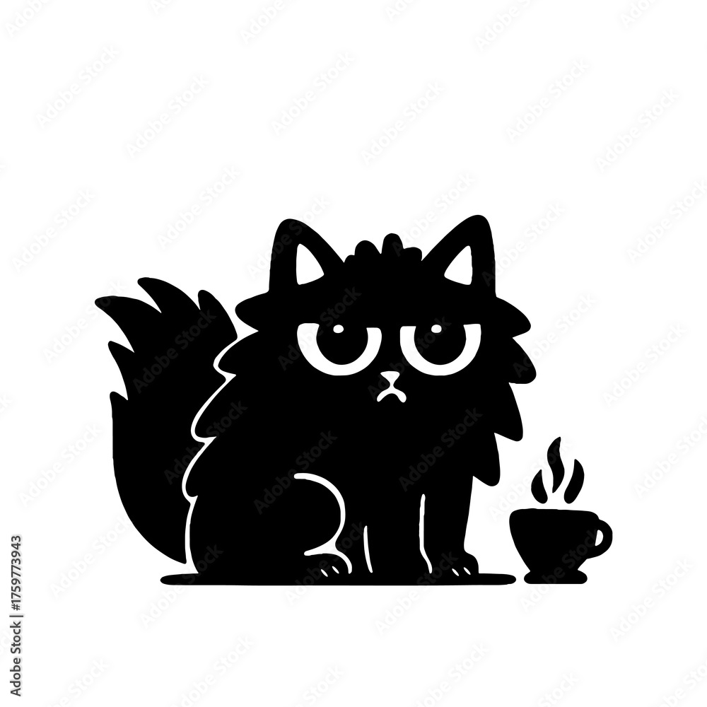 Grumpy Black Cat Illustration with 'Not in the Mood Today' Text for Apparel Design