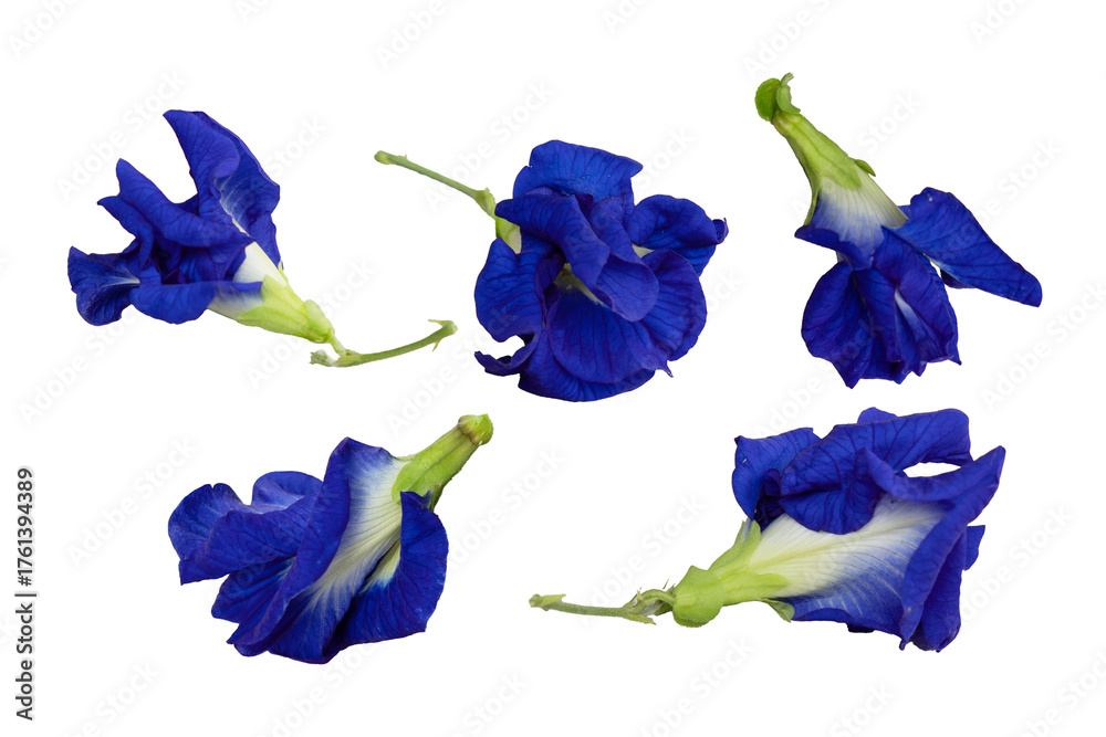 Blue butterfly pea flowers isolated on white