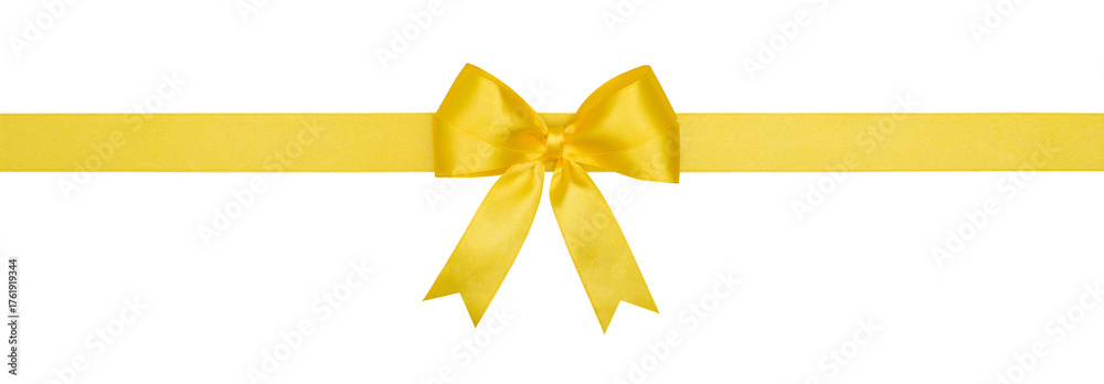 Yellow Bow and Ribbon Isolated on White and Png Transparent Background, Clipping Path Included