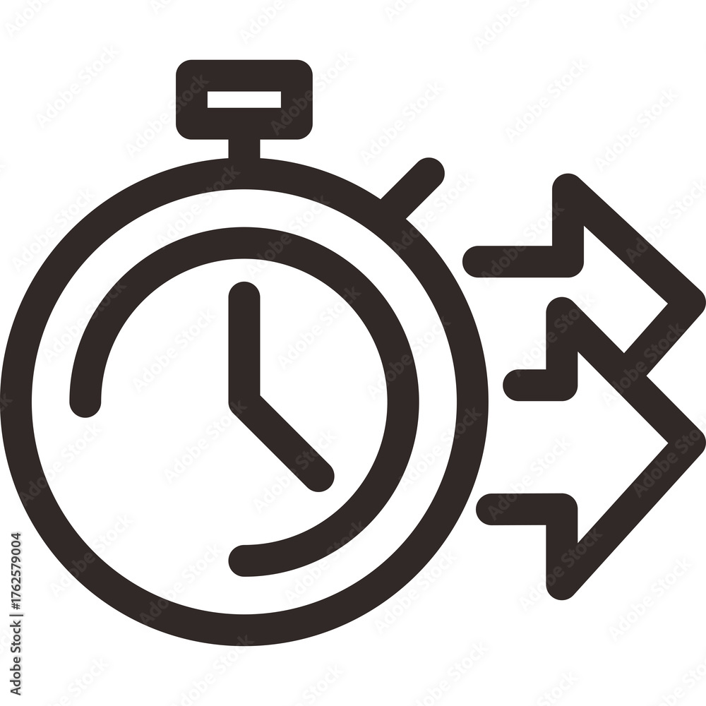 Stopwatch Icon Representing Time Management and Speed With Arrows Indicating Progress and Direction Against Transparent Background