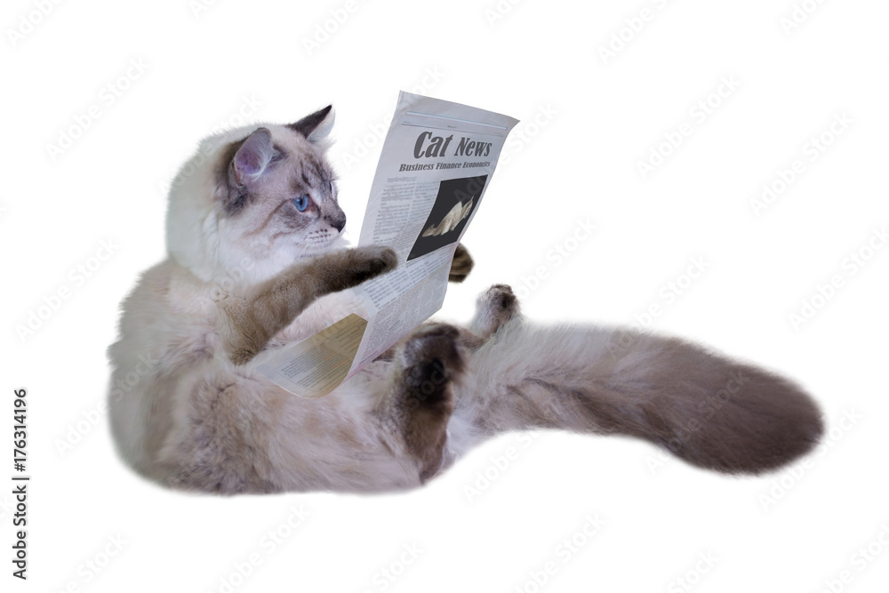 The cat is reading a newspaper