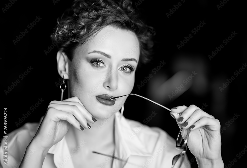 red-haired Woman Writer in a Dramatic Setting with Vintage Typewriter and Crumpled Papers