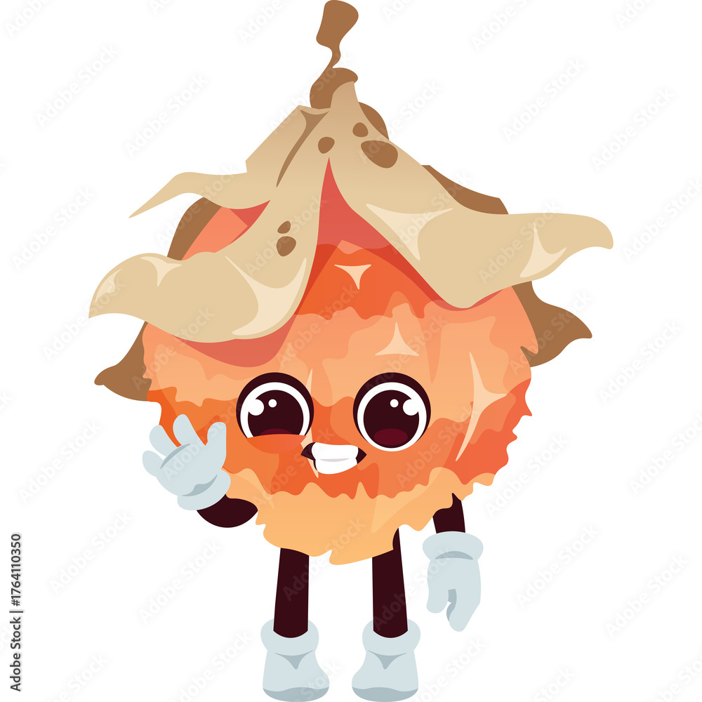 Whimsical Pixel Art Character With Cute Face Waving Hello Wearing White Gloves and Blue Shoes on Transparent Background