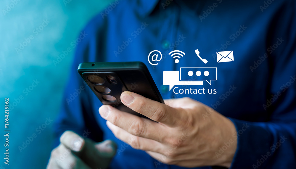 Contact us online communication concept with businessman using smartphone for email chat and support