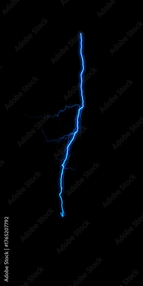 A dynamic blue lightning bolt strikes diagonally across a dark background, illuminating the void with electric energy.