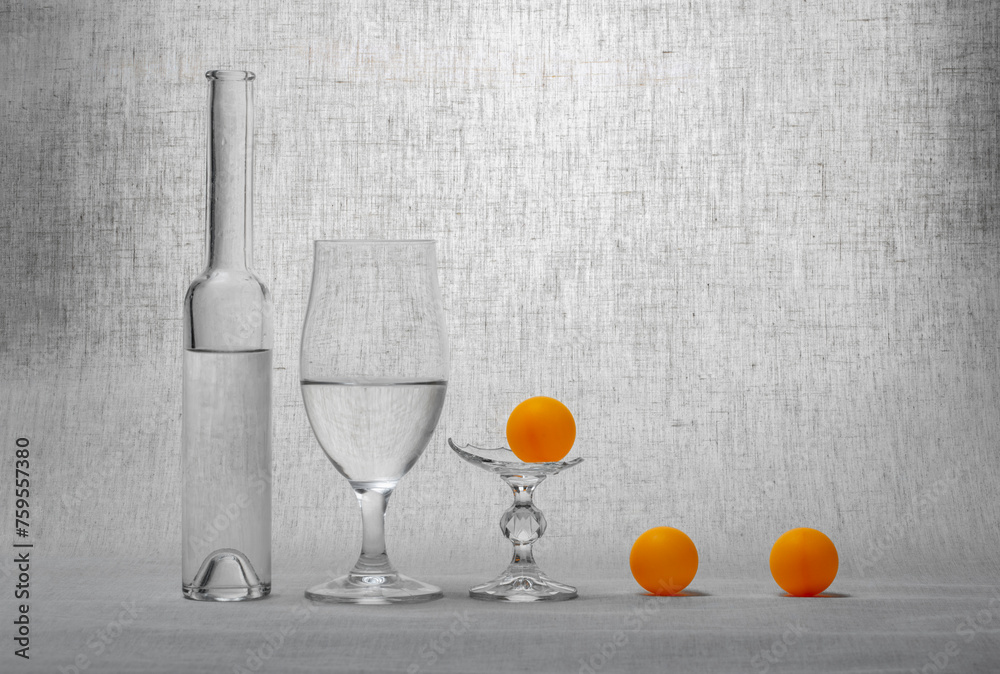 Abstract still life with a glass of water on a color bright background