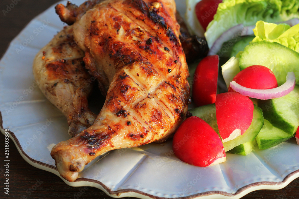 Woman soldier confidently crosses arms on busy city street wearing camouflage uniform and dogtags; pride duty.
