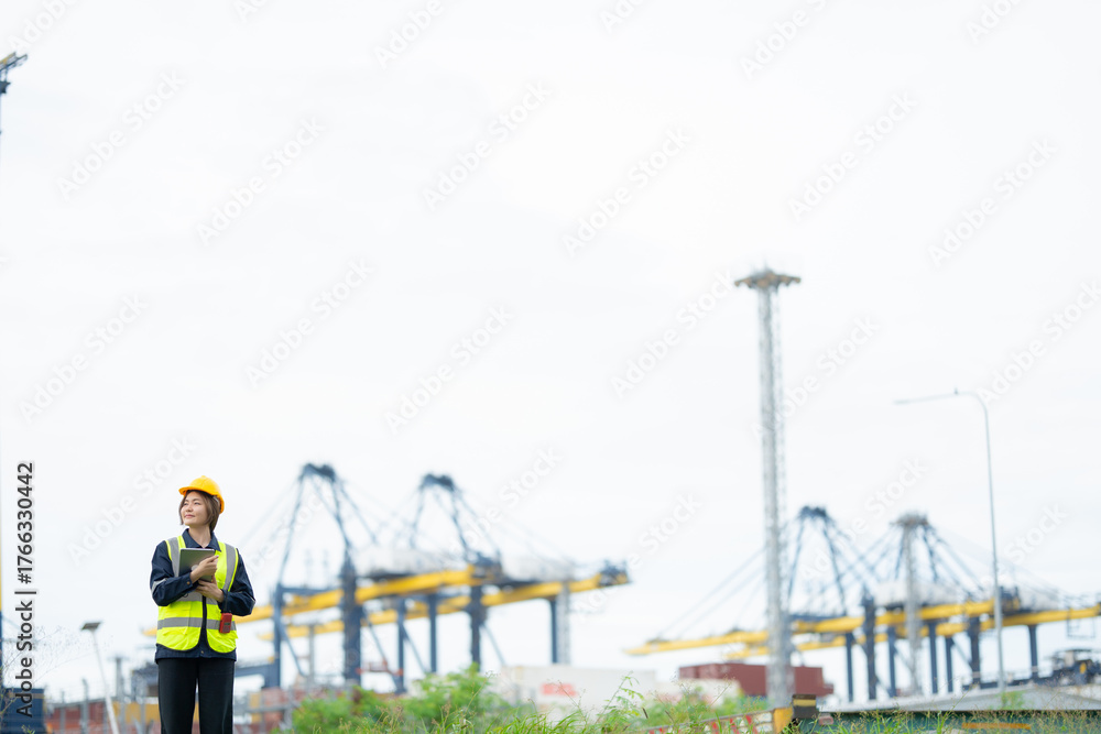 Representing her engineering company, the female engineer conducts field inspections, ensuring business operations align with safety protocols and international industry standards.