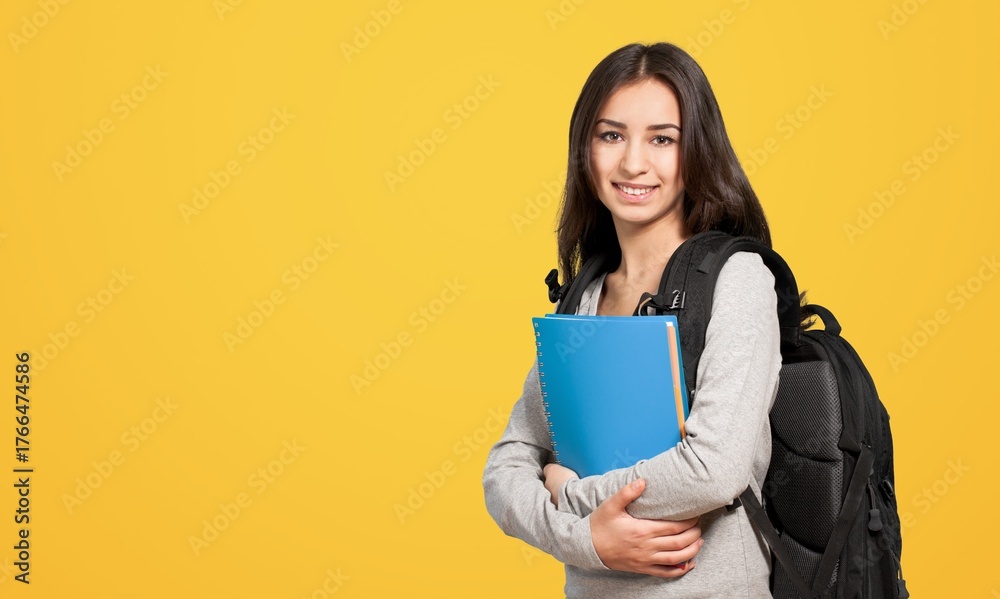Optimistic smiling college student girl with books