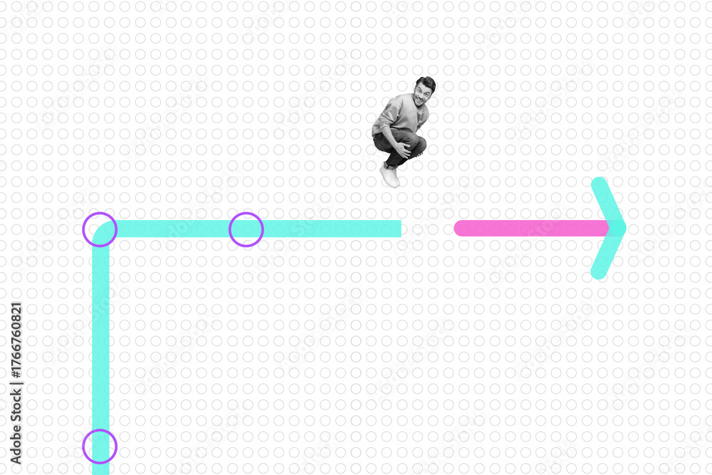 Trend photo banner 3d collage of happy business man jump arrow development progress symbol aim achievement success concept