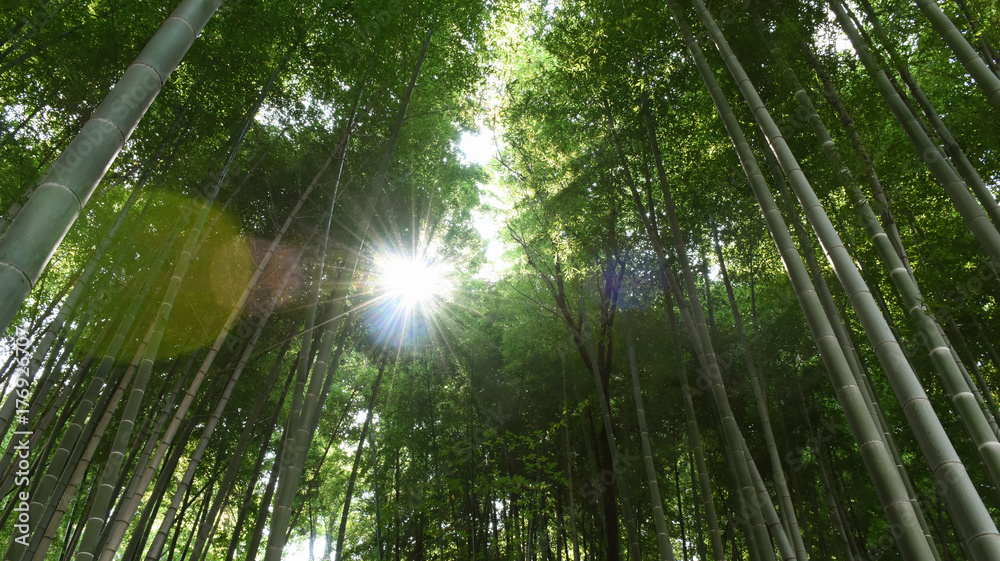 眩しい太陽と竹林(栄光、維持、長期保障、年金、保険などのイメージ))