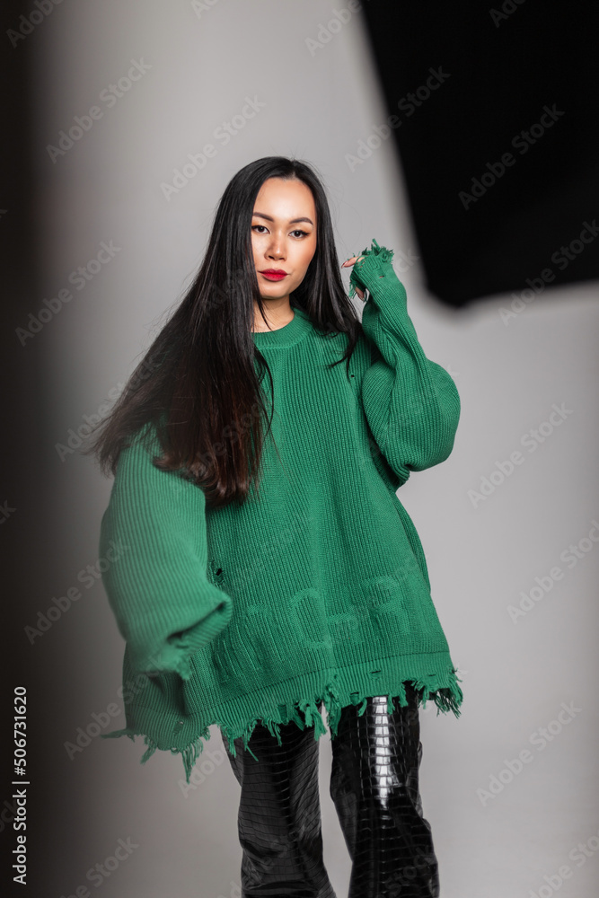 Festive Christmas trees decorated with gold littering lights, magic details and decor of winter holidays