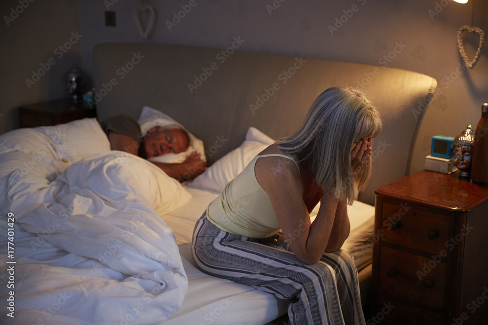 Worried Senior Woman In Bed At Night Suffering With Insomnia