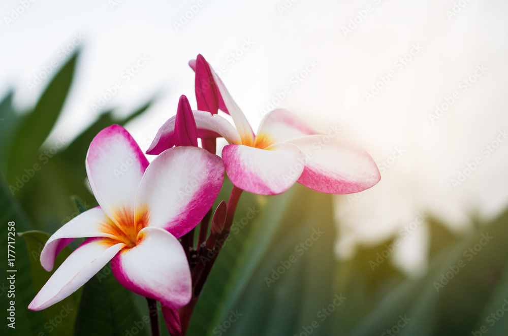 Red Plumeria flowers on tree beautiful,frangipani beauty