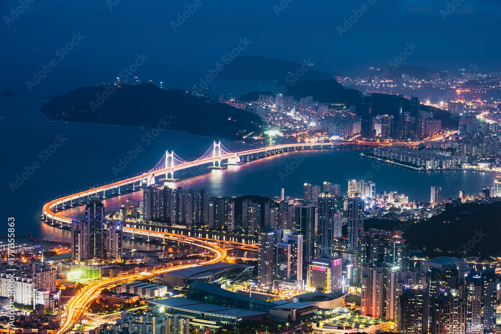 GwangAn Bridge and Haeundae at night in Busan,Korea