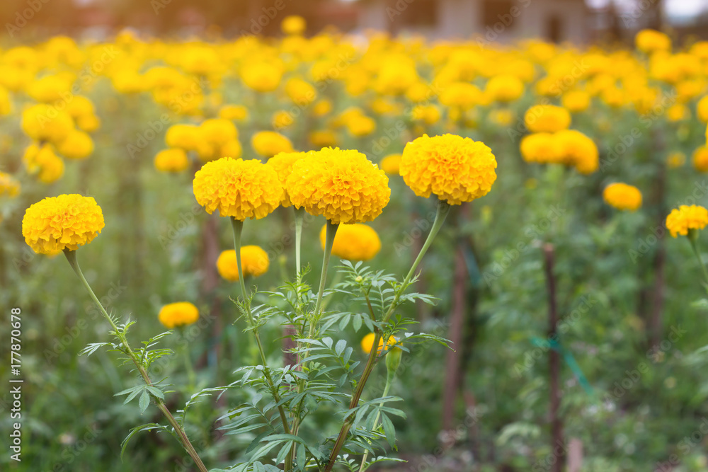 Marigold flower field,spring season yellow flowers,yellow Flower field blooming