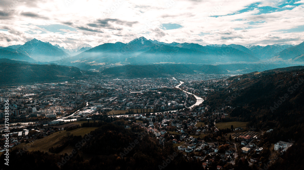 Luftaufnahme Innsbruck Tirol mit Bergen