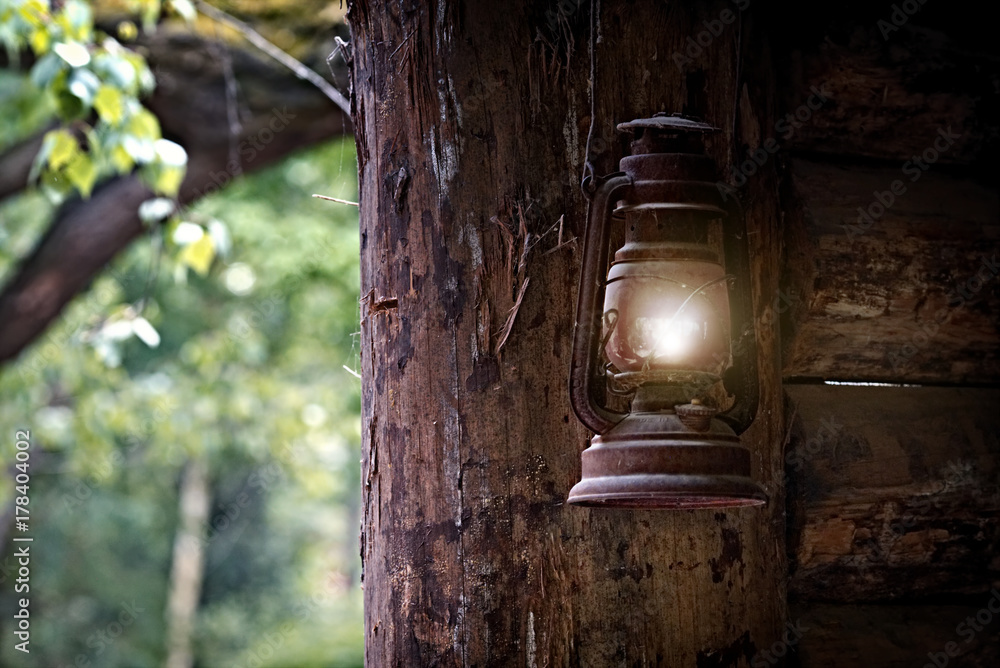 Gasoline lamp hanging of a tree .Vintage Laterne hanging of a tree.