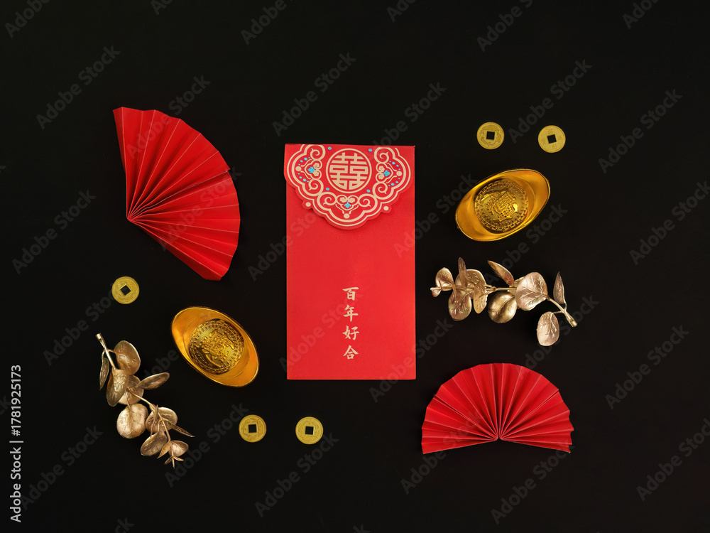 Merry Christmas and Happy Holidays greeting card, frame, banner. New Year. Red Christmas ornaments and gifts, presents on green background top view. Xmas holiday festive theme. Christmas decoration