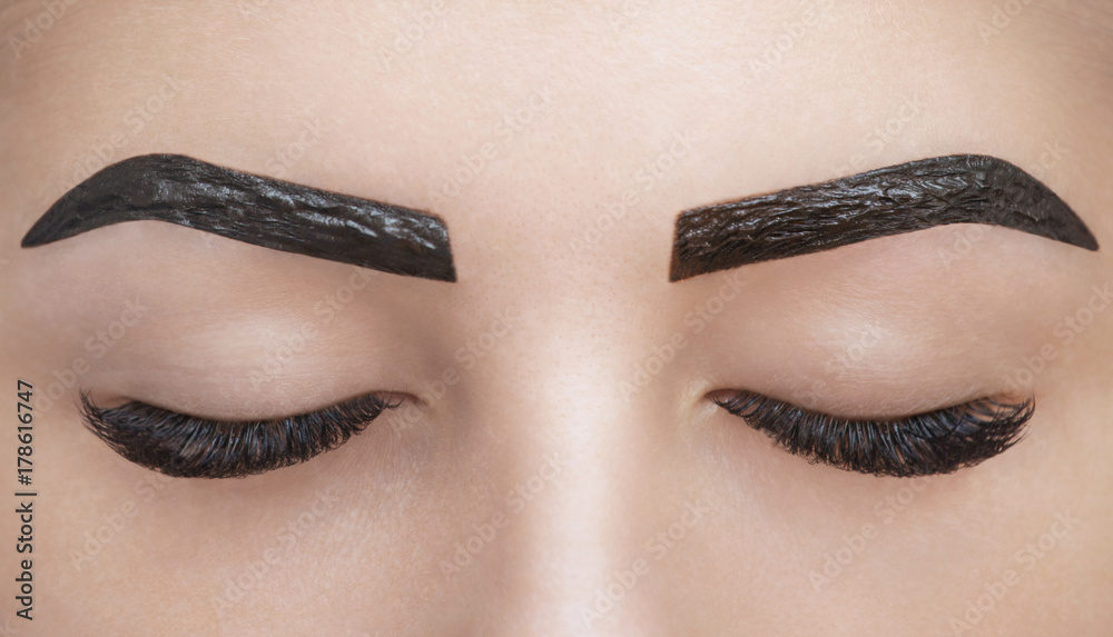 makeup artist applies paint henna on eyebrows in a beauty salon. Professional care for face.