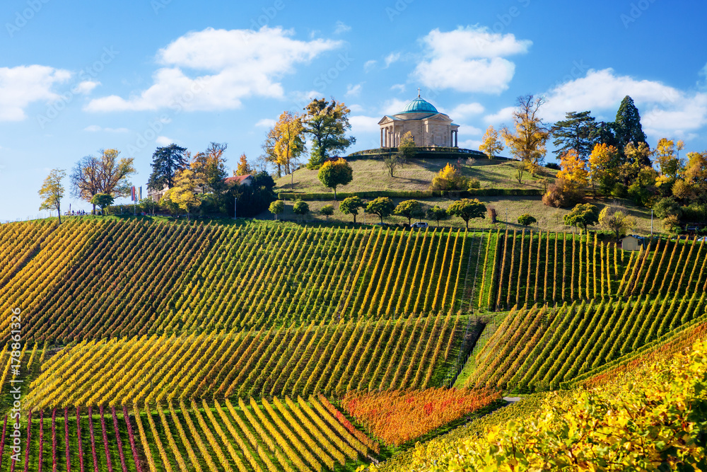 Stuttgart Germany scenic view of Rotenberg mausoleum and vineyards