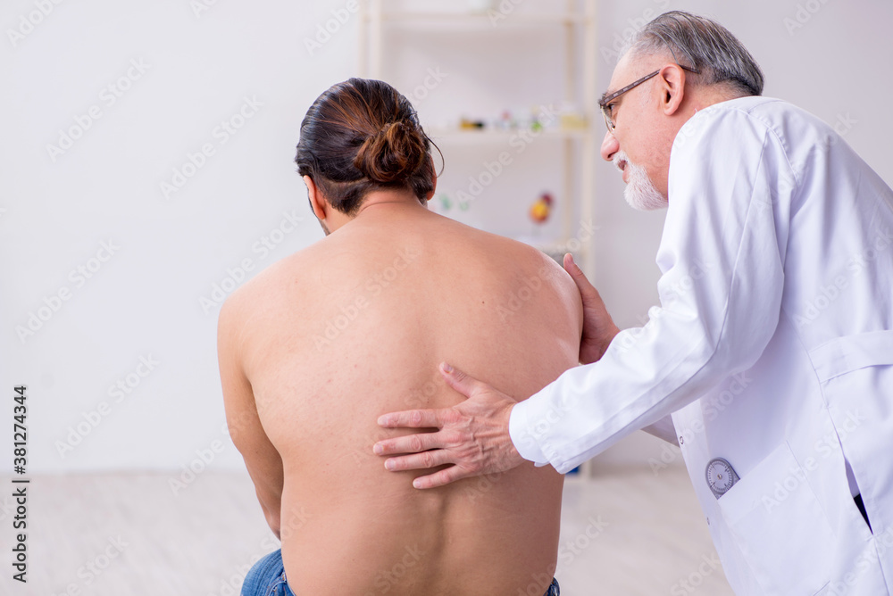 Empty therapy office showing leather sofa, tissue box, glass of water and books on table, bookshelf in background, representing psychological counseling or psychotherapy session setting