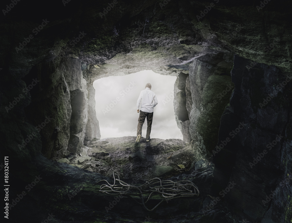 Man is Going Out of Cave-Deliverence Christian Concept