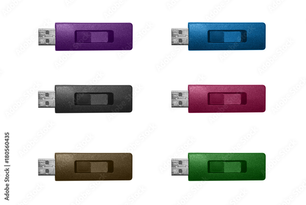 A USB flash drive on a white background.A plastic flash drive.The information carrier.
